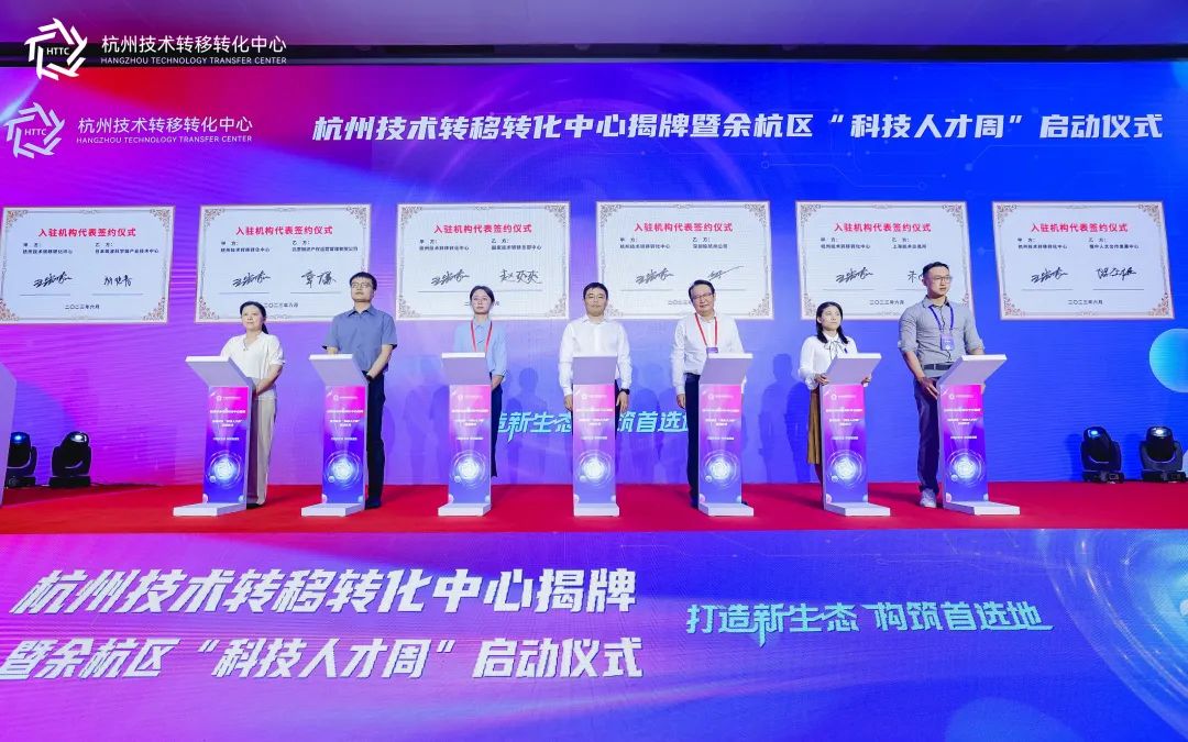 6月5日上午,杭州技術轉移轉化中心(以下簡稱“杭轉中心”)揭牌儀式暨余杭區“科技人才周”啟動儀式在杭州師范大學科技園順利舉行。杭州市政府副秘書長沈凱波,杭州市科技局局長樓秀華,城西科創大走廊管委會黨工委委員、管委會副主任施黃凱,杭州市委人才辦副主任尹凡,杭州市科技局副局長樓立群,杭州市科技局副局長鄧崢,余杭區委常委、組織部長張立,余杭區副區長羅建強,臨安區委常委、副區長陳立群,西湖區副區長俞暉,杭州資本黨委委員、副總經理、杭州科創集團董事長、杭州技術轉移轉化中心董事長許寧出席并揭牌。