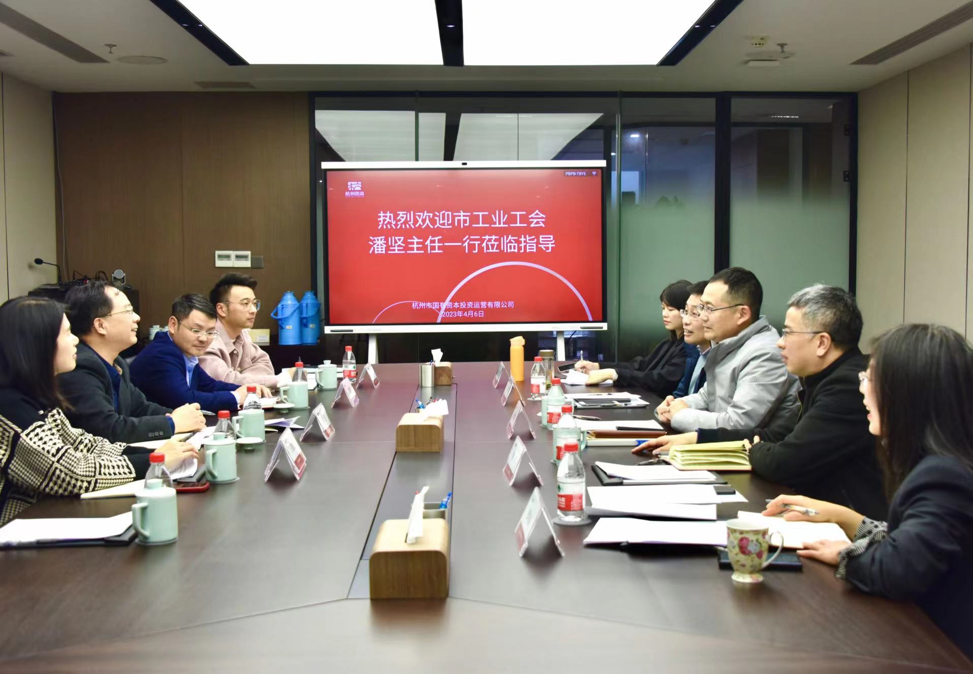 4月6日下午,杭州市工業工會主任潘堅一行來公司調研指導工會工作,公司黨委委員、副總經理壽學軍,工會副主席李寶嵐、黨群工作部相關人員一同參加座談交流。